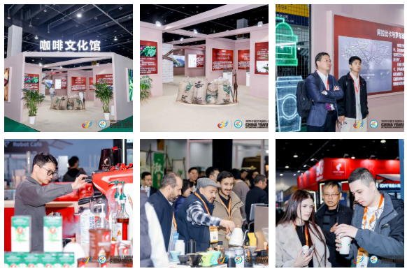 在咖啡文化展示區(qū),介紹了咖啡豆從種植、采摘、烘干、加工全過程的“前世今生”。來自越南、馬來西亞、